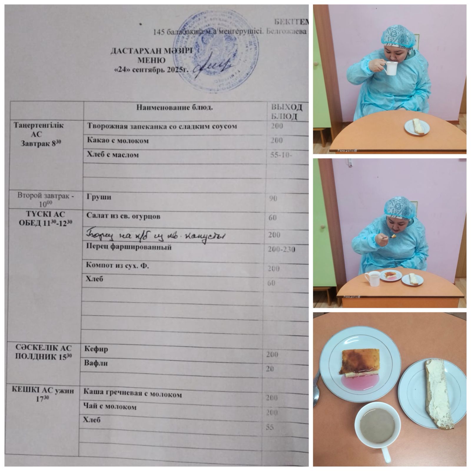 Органолиптическая оценка в КГУ "Специальный ясли - сад для детей с тяжелыми нарушениями речи №145" качества блюд представителями родительской общественности. » ГУ "Санаторный ясли сад №145"