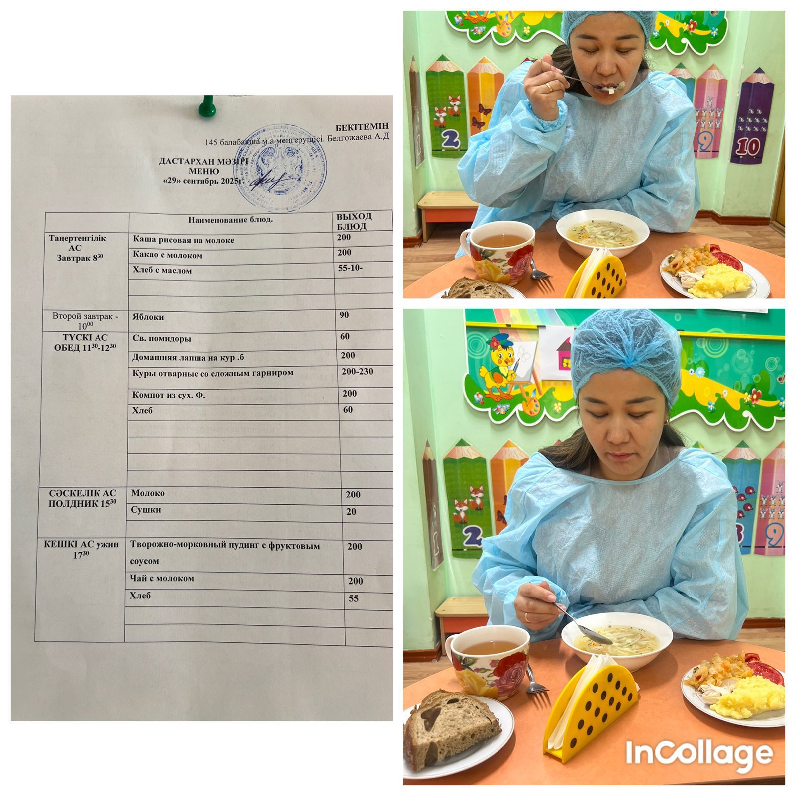 Органолиптическая оценка в КГУ "Специальный ясли - сад для детей с тяжелыми нарушениями речи №145" качества блюд представителями родительской общественности.