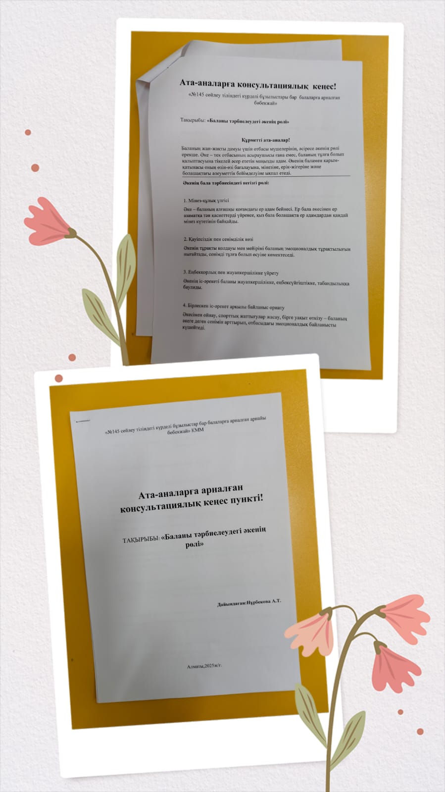 10 қараша 2025 0 1 2 3 4 5 Ата-аналарға арналған консультациялық кеңес Тақырыбы: "Баланы тәрбиелеудегі әкенің рөлі" Ата-аналарға арналған консультациялық кеңес Тақырыбы: "Баланы тәрбиелеудегі әкенің рөлі"Тәрбиеші: Нұрбекова А.Т.